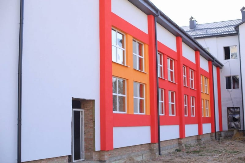Наразі у школі облаштовують внутрішні мережі водопостачання, опалення та каналізації. Ведеться прокладання електропроводки та розпочалось утеплення фасаду, яке проводиться потовщеною мінватою 250 мм, а вікна встановлюються з покращеним на 25% опором теплопередачі, порівняно з державними будівельними нормами.
