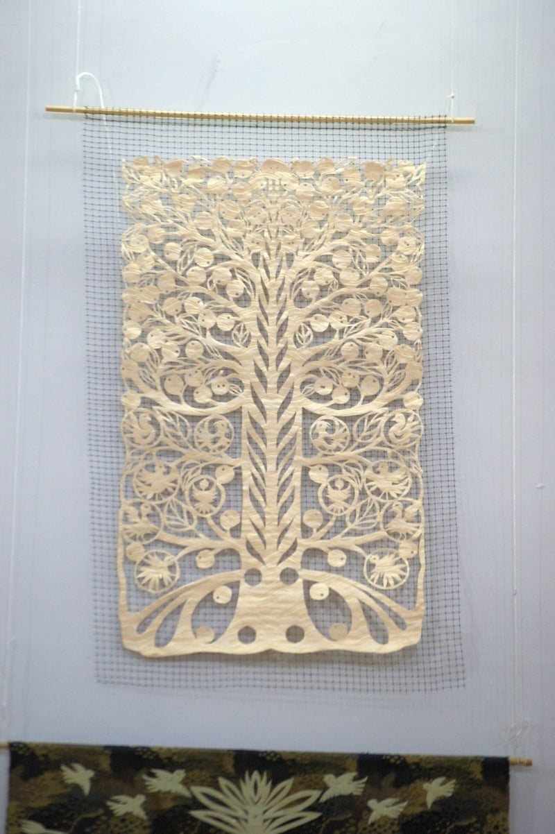 На виставці загалом близько 50 робіт. В експозиції представлені як витинанки традиційного розміру – стандартного аркуша, так і більш масштабні роботи. Тема – це український орнамент, українські легенди і міфи та образи українськості.
