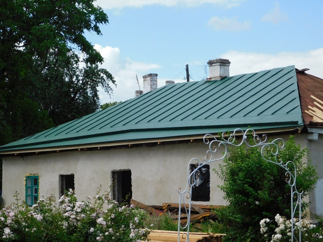 Триває ремонт даху. Він має такий вигляд, як при житті письменника. частково відновили й вікна. Вони скляні і мають дерев’яні рами, пофарбовані у зелений колір.