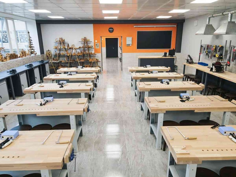 Облаштували майстерню сучасним обладнанням та інструментами. Придбали рейсмусовий та свердлильний станки, шліфувальні, токарні та столярні верстати. Також закупили багатофункціональні верстаки, циркулярну, торцювальну та стрічкову пилки, токарно-гвинтовий верстат, фрезерний станок по дереву, фугувально-рейсмусовий верстат по дереву та набір електроінструментів.