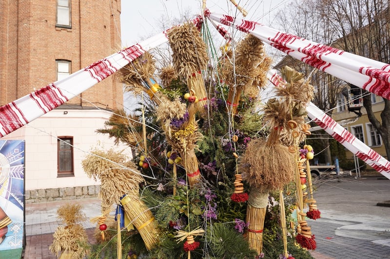Також облаштовують етнолокацію «Вінницький різдвяний дідух». Його висота понад три метри. Оберіг прикрасили калиною, яблуками та колосками пшениці.