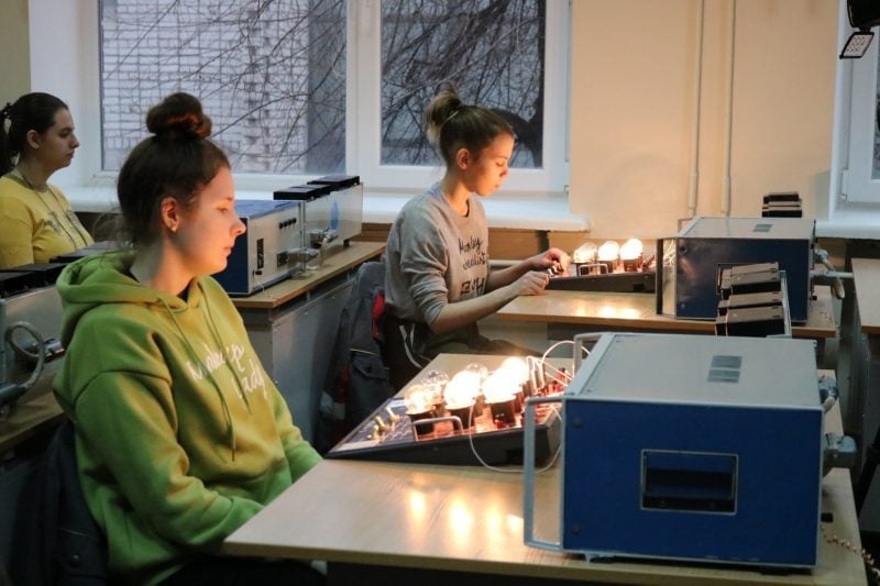 В одному з навчальних кабінетів встановили спеціальний стенд, на якому можна виконувати різні електротехнічні лабораторні роботи.