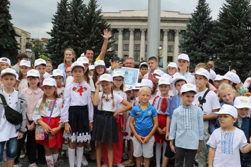 Понад 400 дітей у Житомирі намалювали найбільшу картину про Україну до Дня Незалежності та встановили рекорд.