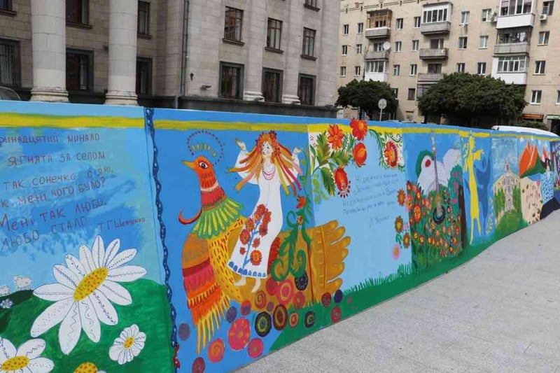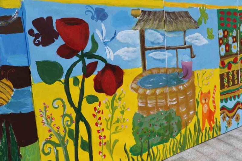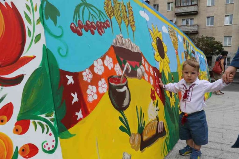 Художниця, яка керувала процесом, розповіла, що діти виявляли ініціативу і бажали домалювати ще щось. Так на полотнах з’явилися коти, борщ із ложкою, вареники, гарбузи, снопи та колоски.