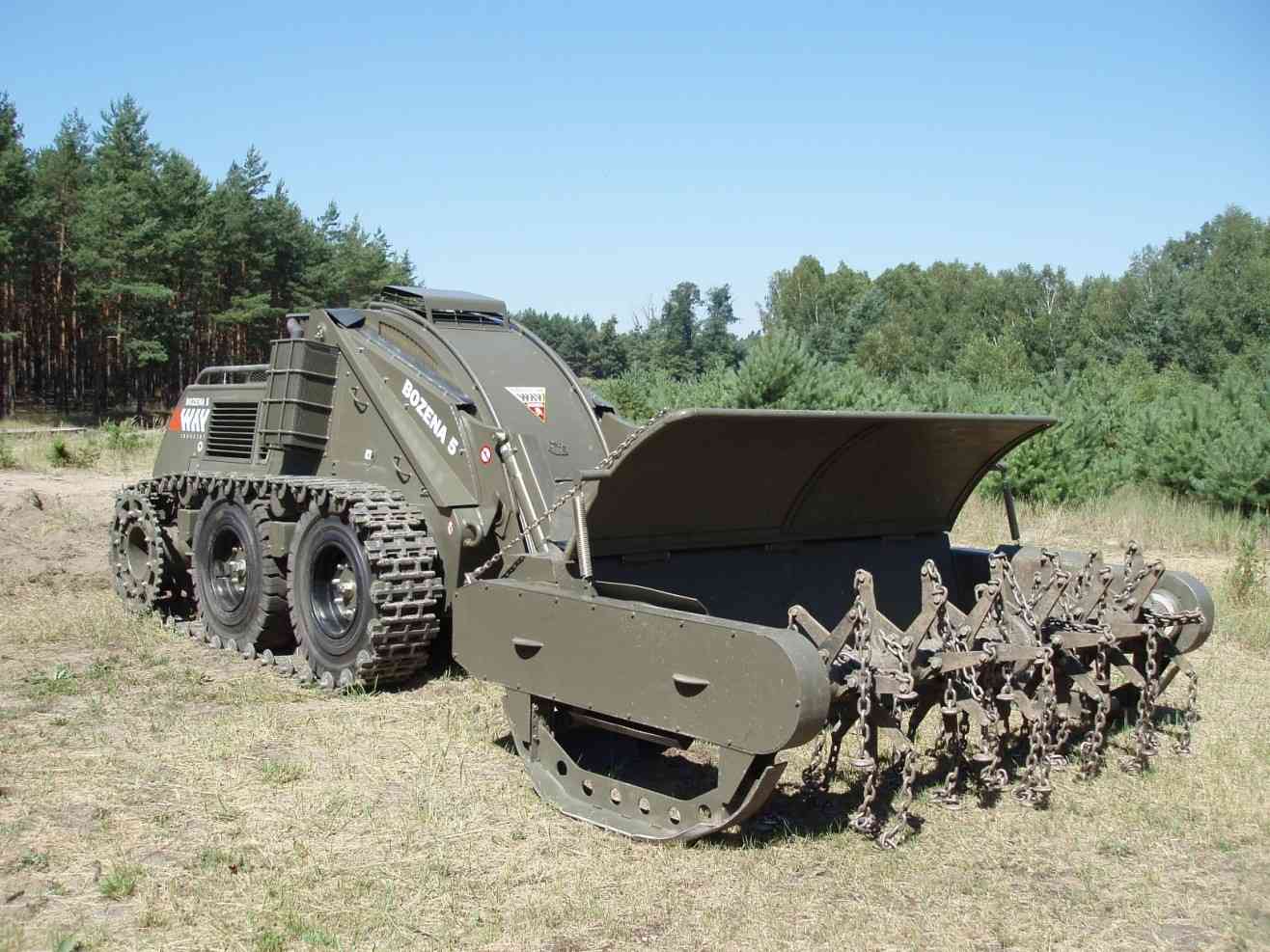 Зазначається, що система розмінування Bozena-5 — це гусенична дистанційно керована машина, яку використовують для розмінування територій шляхом підриву мін.