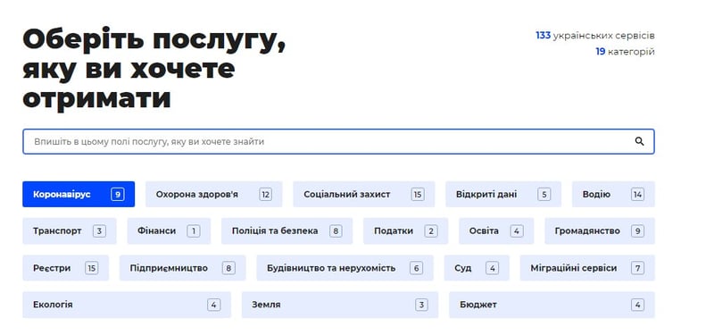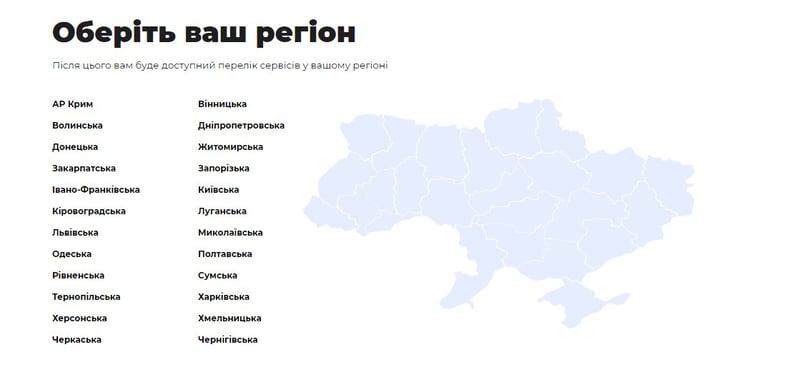 Щоб скористатися якимось сервісом, потрібно обрати потрібний вам сервіс на, після чого користувача перенаправить на офіційну сторінку цієї послуги на державному домені.