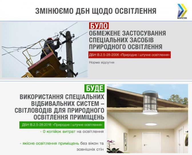 В Україні 28 лютого вступила в дію норма щодо використання світловодів для природного освітлення приміщень, де недостатньо природного світла.