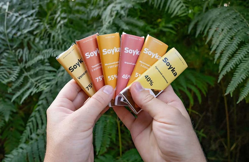 У асортименті Soyka – 6 смаків. Це – гречаний шоколад на гречаному чаї, з кокосовим молоком, кіноа, амарантом і кеш’ю. З чистих какао-бобів з Венесуели вона створює 75% чорний шоколад. Він не такий гіркий, як в мас-маркеті, бо какао-боби формують солодкість.
