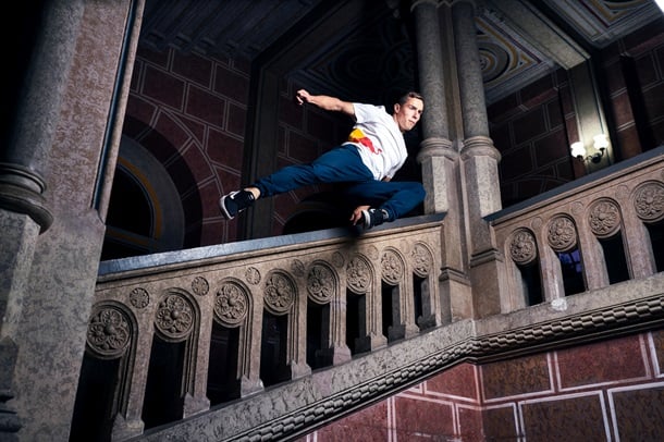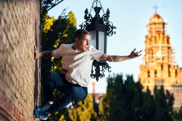 Український паркурник, чемпіон світу з паркур-фрірану Олександр Титаренко продемонстрував свої вміння під час зйомок короткометражного фільму.