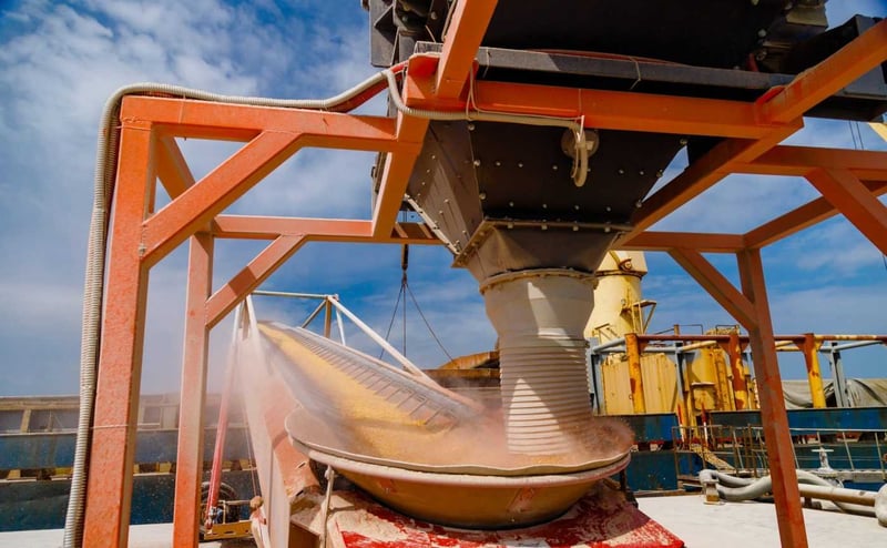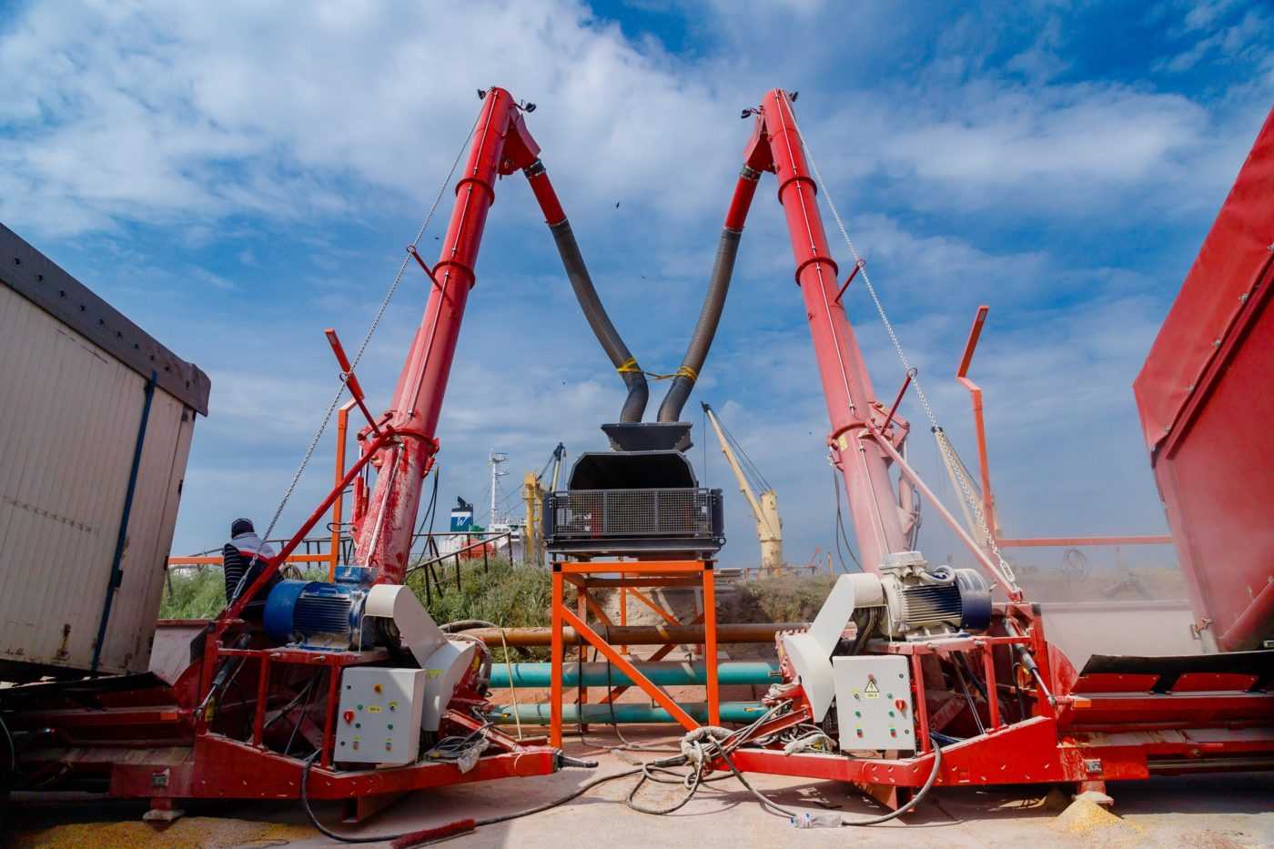 Розповідається, що перевалка зернових здійснюється за допомогою двох «Ковчегів», стрічкового конвеєру ZEO-BC-500 та телескопічної навантажувальної машини.