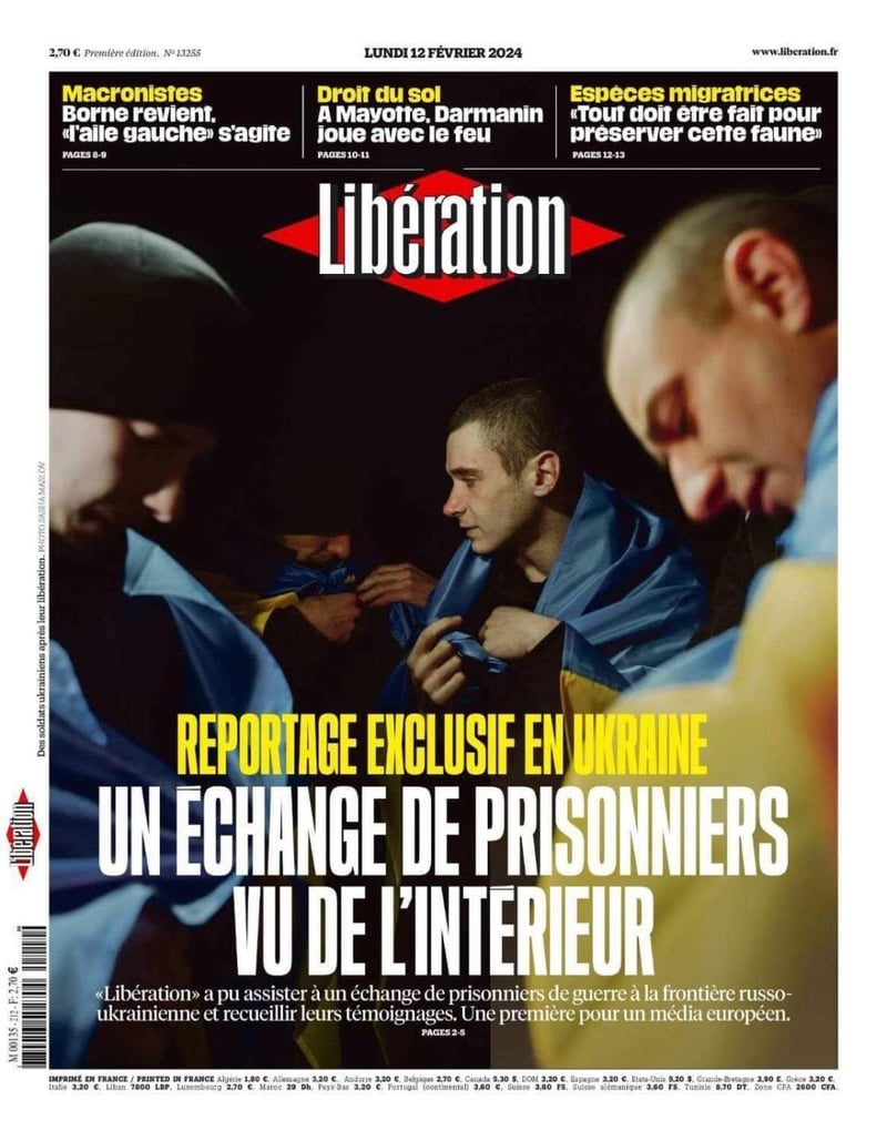 У Liberation писали, що газета першим іноземним медіа, якому з українського боку дозволили супроводжувати операцію з приймання та реабілітації військових, травмованих полоном. Матеріал надрукували на обкладинці видання до другої річниці повномасштабного вторгнення рф.