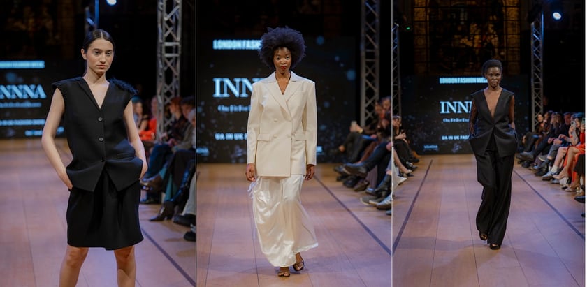 Також глядачі мали можливість оцінити колекцію бренду INNNA. Це однойменний бренд, який дотримується філософії «один лук для будь-якої нагоди». Команда запевняє, що плавний перехід від ділової зустрічі до шикарного коктейль-бару можливий.