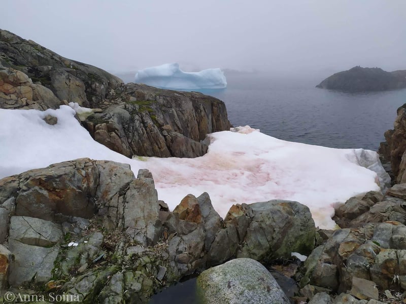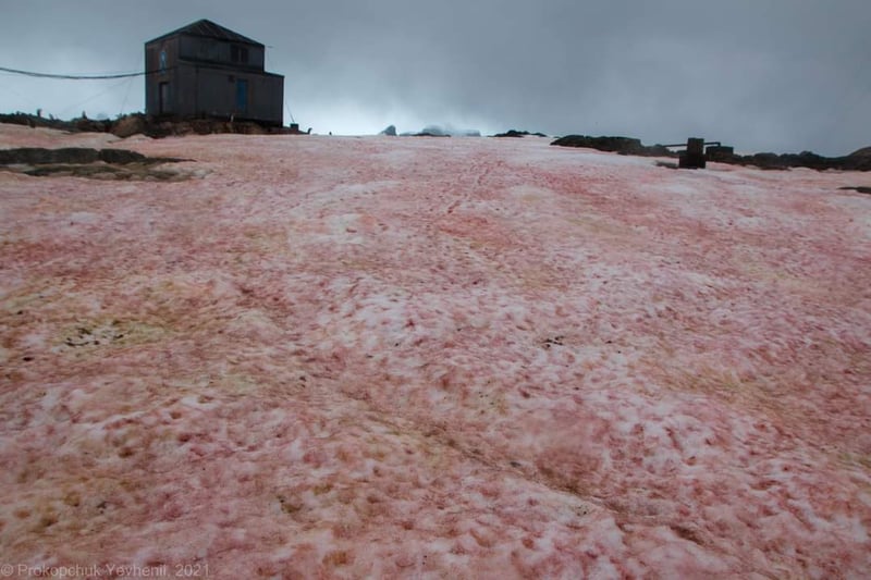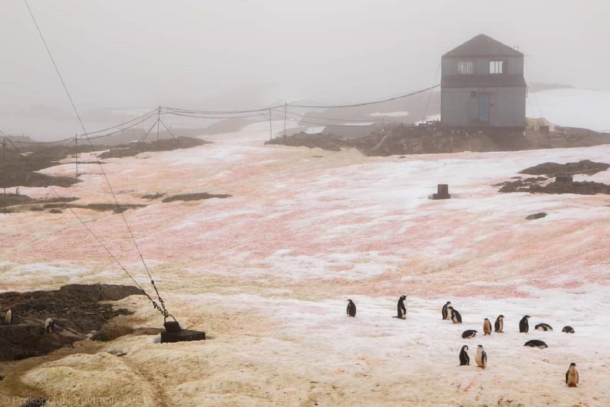 Наприкінці антарктичного літа в районі української станції «Академік Вернадський» спостерігається таке явище, як «цвітіння» снігу.