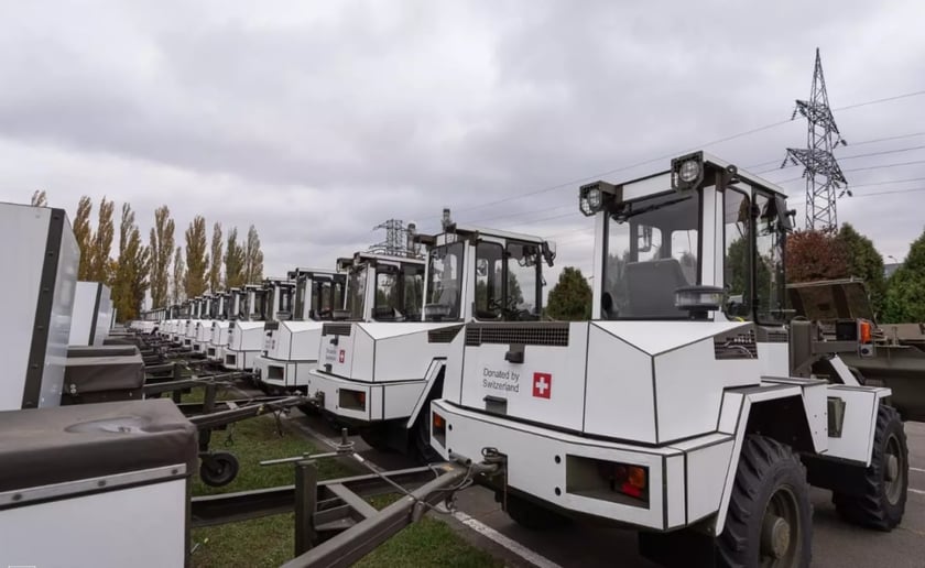 У межах Меморандуму про співпрацю уряд Швейцарії передав Державній службі України з надзвичайних ситуацій 24 повнопривідні колісні навантажувачі та 30 пожежних мотопомп на причепі Firefighting pump.