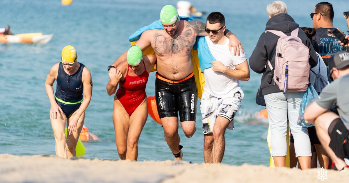 Захисників підтримували українці та друзі України, які з прапорами вболівали під час та після запливу.