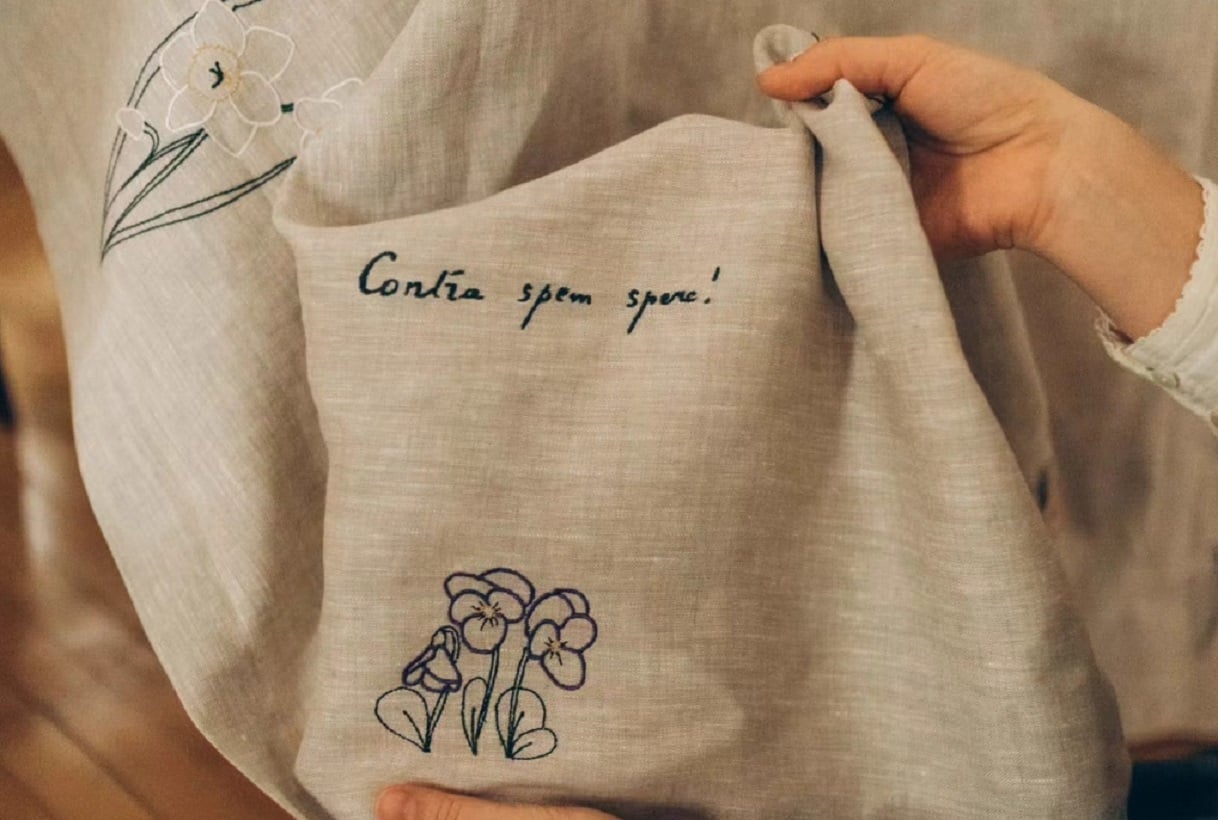 «З грудня ми обдумували нові вишивки й ставили собі кілька завдань: зробити щось життєствердне, вишити квіти та вшанувати памʼять нашої крутої землячки. Так, усе обʼєдналось у колекцію під назвою Contra spem spero!», — зазначила засновниця бренду.