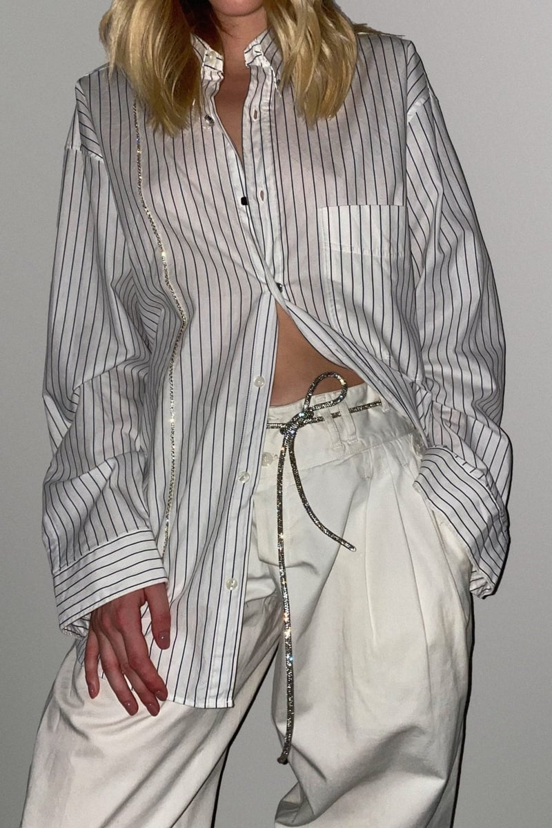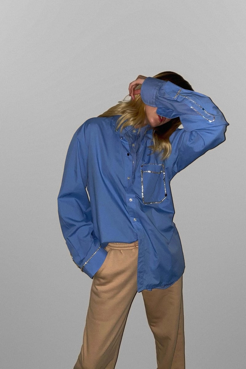Як пише видання, дизайнер створює чоловічі сорочки з перероблених матеріалів, прикрашаючи їх стразами та кристалами.