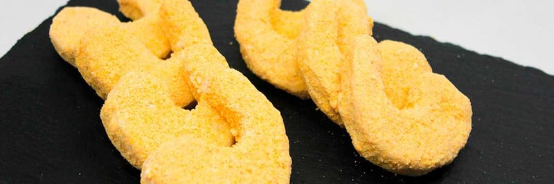В основі рослинних креветок – гороховий білок. Також у складі соняшникова олія, емульгатор целюлозна камедь, модифікований крохмаль.