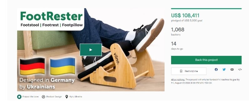 Компанія VILNO, яку заснували брати Данило та Назар Ожго представила на Kickstarter підставку для ніг, створену для полегшення дискомфорту та покращення правильної постави під час тривалих періодів сидіння за комп’ютером.