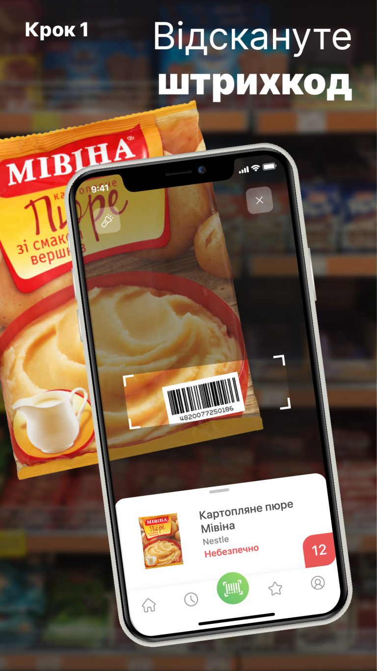 Принцип роботи: за допомогою камери користувач сканує штрихкод, система знаходить товар в базі даних, показує склад і оцінює сукупну користь чи шкоду компонентів.