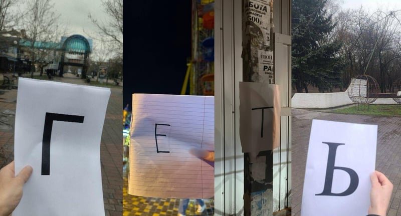 Українці з Бердянська, Мелітополя, Севастополя, Алушти та Донецька спільними зусиллями склали фразу: «путін, іди геть».