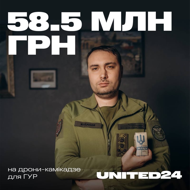 Українці зібрали понад 58,5 млн гривень через платформу UNITED24 на дрони-камікадзе для Головного управління розвідки.