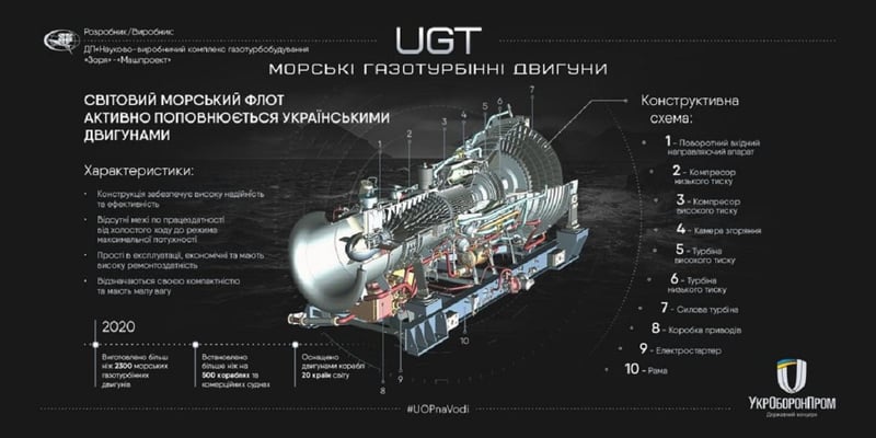 Укроборонпром представив інфоркарту морських газотурбінних двигунів виробництва Науково-виробничого комплексу газотурбобудування “Зоря”-“Машпроект” у Миколаєві.