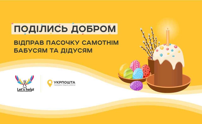 Укрпошта спільно з благодійним фондом Let’s help закликають підтримати літніх людей на Великдень і збирають кошти на солодкі подарунки для понад 8 тисяч самотніх стареньких.