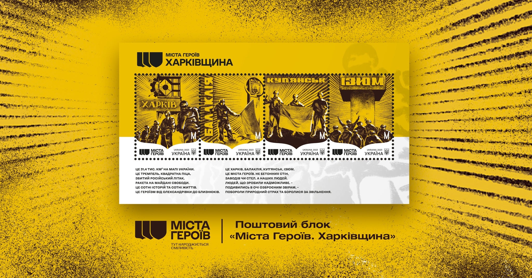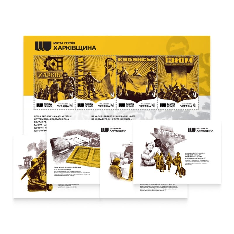 Укрпошта випустила поштовий блок «Міста героїв. Харківщина» до річниці звільнення Харкова, Балаклії, Ізюма та Куп’янська.