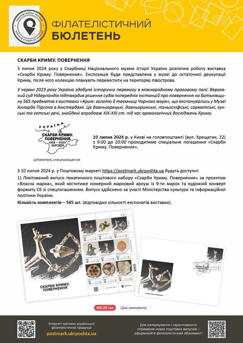 10 липня об 11:00 у Скарбниці Національного музею історії України відбудеться спецпогашення марки, випущеної Укрпоштою.