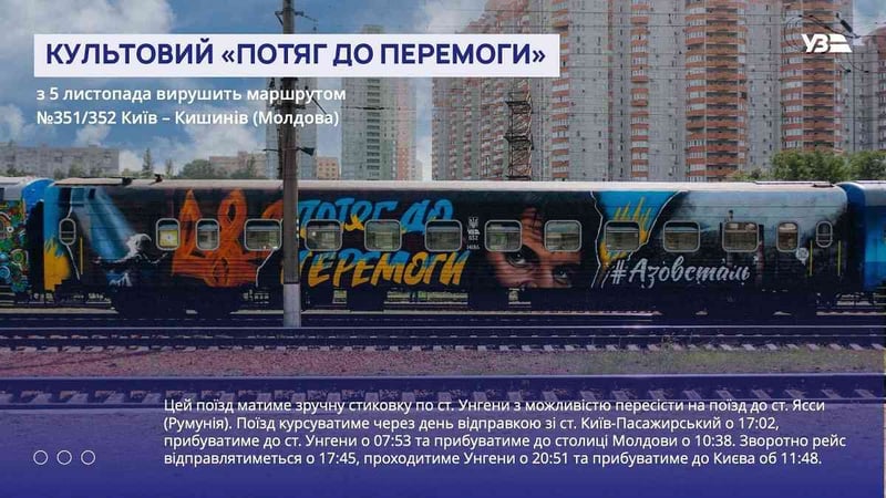 Культовий «Потяг до перемоги» у суботу, 5 листопада, вирушить до Молдови маршрутом «Київ – Кишинів».