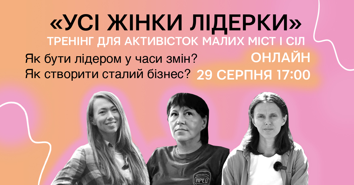 На онлайн-тренінгу спікерки поділяться власними досвідом щодо того, як бути лідеркою в часи змін, впроваджувати екосвідомі ініціативи у своїй громаді та створити сталий бізнес під час війни.