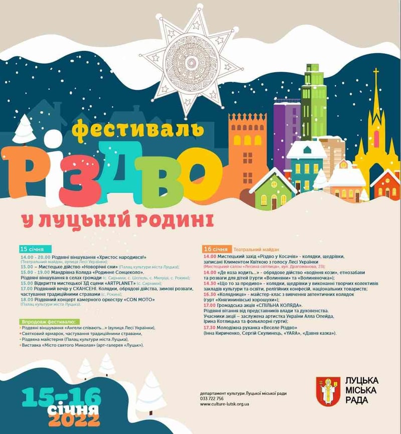 Шанувальників української культури запрошують на фестиваль «Різдво у Луцькій родині» 15-16 січня 2022 року.