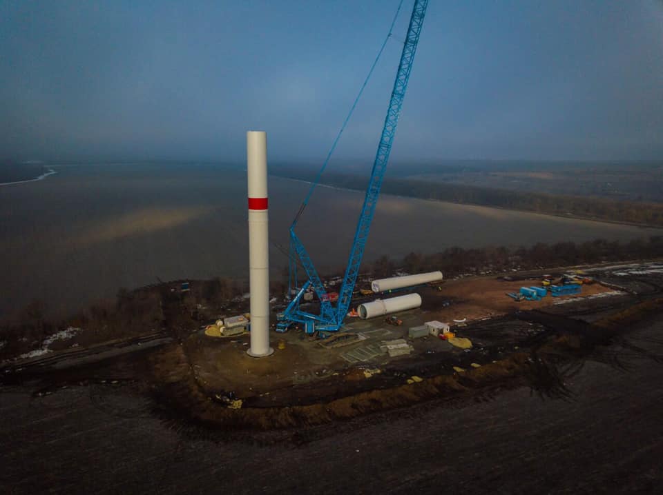 В Краматорске строится ветропарк, в котором в течение трех лет будет установлено 15 ветроэнергетических установок. Три из них будут смонтированы в течение зимы-весны нынешнего года. Для монтажа ветроэнергетических установок в Краматорск привезли и установили кран Liebherr LR 1750/2 высотой 139 метров.