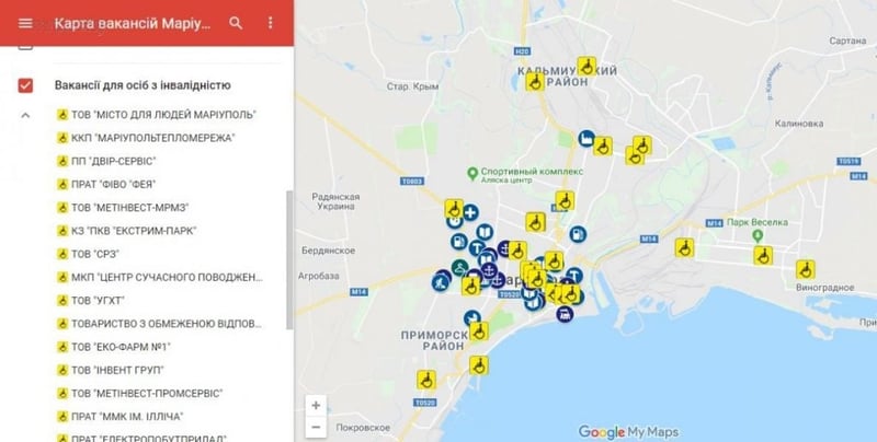 На Google-карте Мариуполя лица с инвалидностью могут найти вакансии в режиме онлайн, пишет портал mrpl.city.