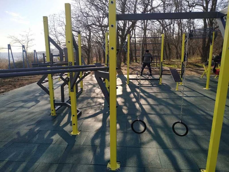 Усі тренажери та спортивні снаряди на майданчику мають антивандальну, надійну та зручну конструкцію.