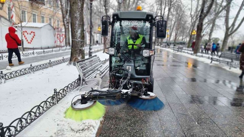 10 спецмашин City Ranger 3070 виробництва Данії в Одесі очищують місто від снігу.