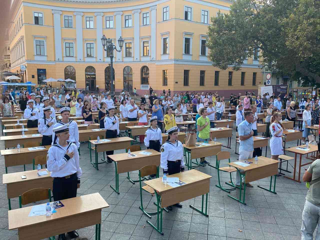 Цього разу участь могли взяти лише 200 осіб, які зібралися просто неба в імпровізованому класі на площі поблизу пам’ятника Дюку.