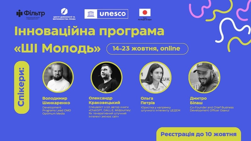 Молодь віком від 18 до 25 років може взяти участь у Інноваційній програмі «ШІ молодь». Ця програма дозволить вам навчитися у провідних експертів у сфері штучного інтелекту та створити власний проєкт, пов’язаний із медіа- та ШІ-грамотністю.