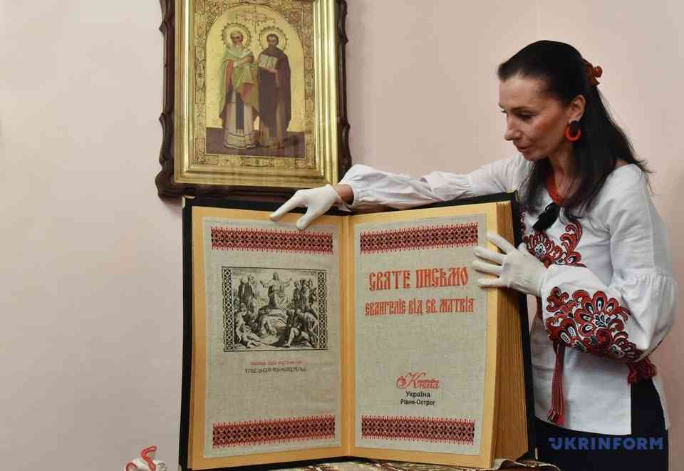 Українка вишила найбільший у світі фоліант. Олена Медведєва з Рівного вишивала це Євангеліє 2 роки. Вишита вручну книга важить 9 кг 400 г!