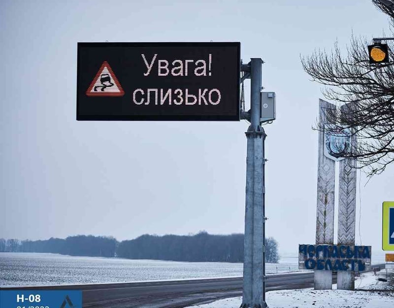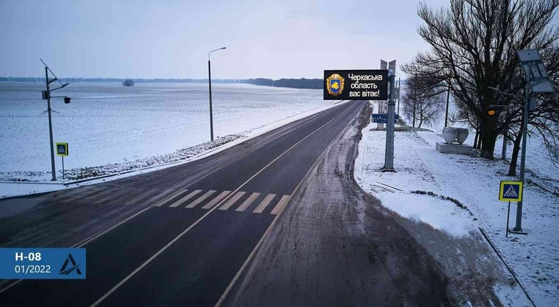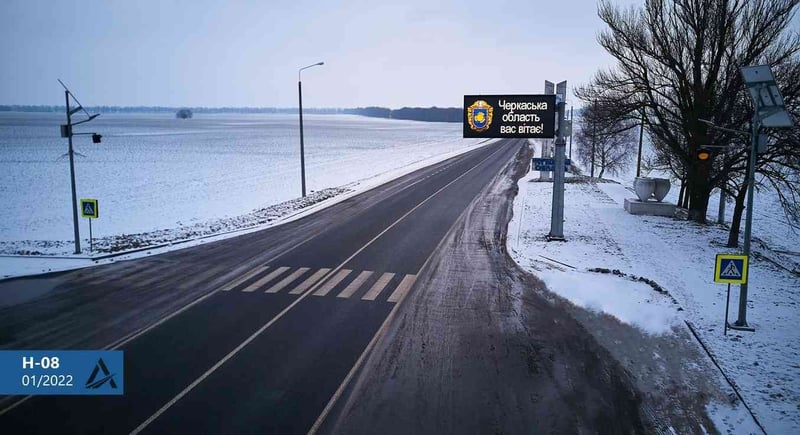 При в’їзді в Черкаську область з боку Київщини на дорозі Н-08 «Бориспіль – Дніпро – Запоріжжя – Маріуполь» запрацювало інформаційне табло, на якому цілодобово висвітлюється корисна інформація для водіїв.