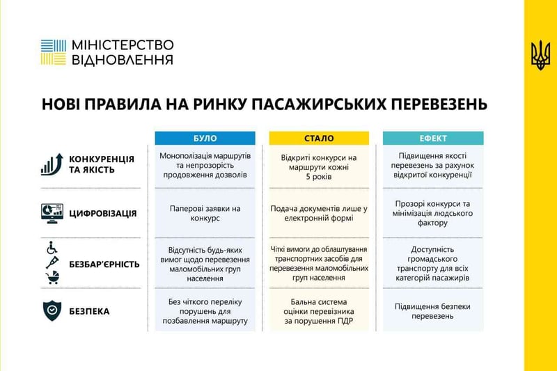 З 13 січня 2023 року в Україні запрацювала реформа пасажирських перевезень. Вона передбачає нові вимоги до якості транспортних послуг та відкриту конкуренцію між перевізниками.