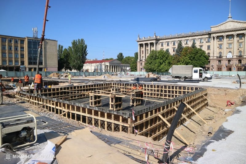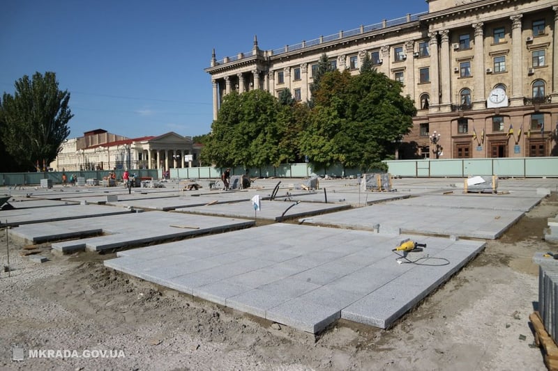Вже вимощено гранітом більше як 1,5 тисячі квадратних метрів, підготовлено бетонну основу під 5,5 тисяч квадратних метрів, близько 7 тисяч квадратів – під гравієм і арматурою.
