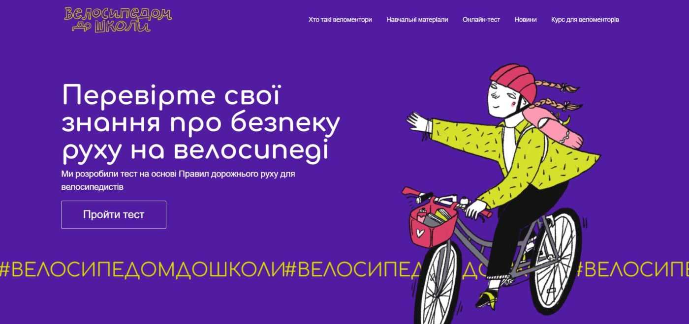 Щоб покращити рівень знань з безпеки дорожнього руху серед велосипедистів для учнів і їхніх батьків та педагогів створили онлайн-платформу «Велосипедом до школи». Вона містить навчально-методичні матеріали та різноманітні тести.