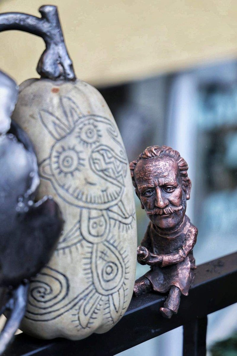 На скульптурі Манайло вирізьблює гарбуз, на якому втілює образ ердога-чорта. Декоровані диньки-гарбузики сорту лагенарії, створені Федором Манайлом, вважаються унікальним напрямом у його творчості. Посол зазначає, що крім художника, ніхто інший не займався цим видом мистецтва. В Ужгороді цей артоб’єкт став 75-ю мініскульптурою.