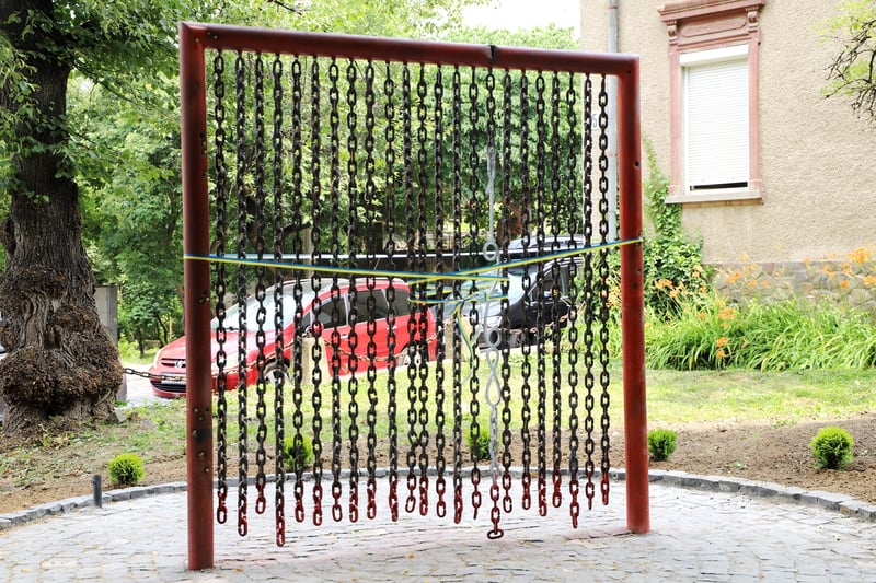 Один із ланцюгів викуваний у вигляді цифр «1968». Тріщина на воротах – символ розриву комуністичного режиму, який відбувся зокрема і ціною життів чехів, словаків, українців.