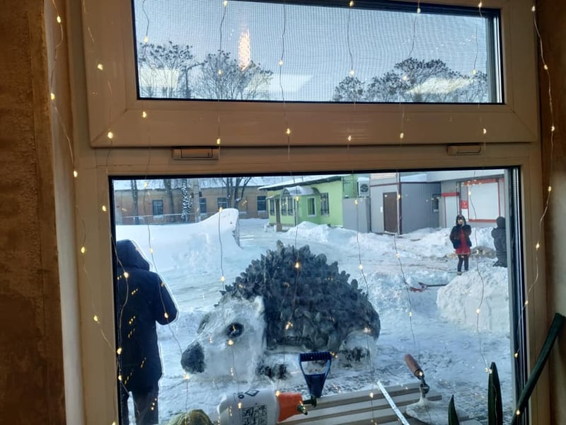 На Київщині зліпили нову фотозону – у Фастові місцеві митці створили гігантського їжака зі снігу.