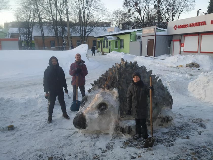На Київщині зліпили нову фотозону – у Фастові місцеві митці створили гігантського їжака зі снігу.
