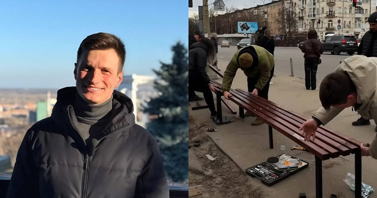 У Полтаві ветеран Степан Чуприна за власні кошти встановлює лавки на місцях, де колись стояли зупинки громадського транспорту. Із монтажем конструкцій йому допомагають друзі.