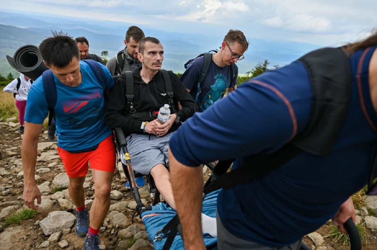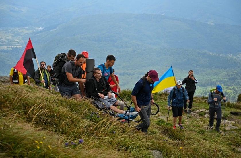 Сергій Іванов отримує фахову допомогу в одному із реабілітаційних центрів Львівщини. Євген Бережний піднявся на гору на кріслі «джульєтка». Він втратив ногу, обороняючи Бахмут, а зараз проходить лікування у Трускавці. Разом із захисниками сходили на гору 30 осіб – серед яких і працівники Львівської ОВА.